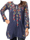 Want to add a little romance to your casual look? Try our Celestin Velvet Bishop Sleeve Blouse. The demure V-neck set off your décolletage perfectly. The raglan sleeves give you an air of comfortable elegance. The black velvet provides the perfect backdrop for the multi-colored embroidery. Delicate tassels complete your look.