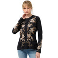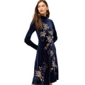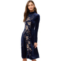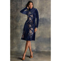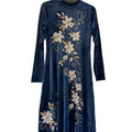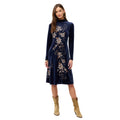 Johnny Was Corinthe Stretch Velvet Mock Dress Floral Embroidery Midnight Blue NEW