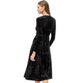 JW Crew Neck Womens Midi Dress Dark Grey Flower Polyester Velvet Dresses for Women