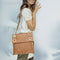 - Crafted with rich brown leather