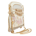 Celebrate love with this charming crossbody bag that gleefully announces Just Married amidst a bloom of beaded roses. The vintage-inspired car design features soft pinks and greens. Perfect for the blushing bride!