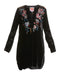 Johnny Was Celestine Velvet Puff Sleeve Floral Black Dress Flowers Embroidery NEW