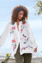 Johnny Was designs draw inspiration from music and bohemian influences. The collection features a modern interpretation of vintage boho chic, with flowing silhouettes and luxurious fabrics.
