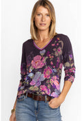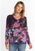 Johnny Was Janie Favorite Valeria Long Floral Special Tee Purple Top Shirt NEW