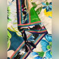 Emanating a vintage feel, the Jenn Scarf is an eye-catching must-have thanks to its rich color scheme and beautiful florals. This scarf is crafted from lustrous silk and boasts a floral printed border with bright, romantic blooms at the center. Tie around the neck or attach to a tote for a chic look.