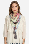 Johnny Was Kopari Flowers Silk Scarf Large Floral Pink White Grey Tassels Scarves NEW