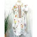 Johnny Was Lemona Dress Floral Embroidery Linen Natural Button Front White NEW