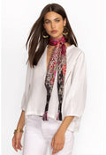 Artfully crafted from 100% flowing silk, the Pink Lace Silk Scarf is a must-have accessory. Featuring a vibrant print adorned with bold floral blooms, this luxurious scarf adds the perfect touch of color to your look. Tie at the neck or to the handle of a statement handbag for an extra bit of flare that adds visual interest to your look.
