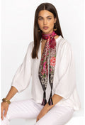 Johnny Was Pink Lace Silk Scarf Square Large Bold Floral Black Flower Tassels NW