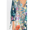 Johnny Was Sunrise Surf Swim Resort Cover Up Long Dress V Neck Flower Blue L NEW