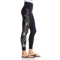 Elevate your athleisure collection with the Johnny Was Maddy Leggings. Crafted from a soft, breathable cotton-spandex blend, these leggings offer the perfect amount of stretch for a flattering, flexible fit. The sleek black fabric serves as a canvas for vibrant floral embroidery on both side-panel, delivering that signature bohemian luxury Johnny Was is known for. With an easy pull-on style, they transition effortlessly from a morning yoga session to a stylish afternoon out.