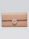 Coated canvas coin pouch featuring logo pattern in beige and brown. Grained leather trim in brown and multicolor graphic printed throughout. Grained leather logo patch in brown at face. Zip closure. Microsuede lining in pink. Antiqued gold-tone hardware.