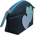 ILI New York Double Heart Cosmetic Case Leather Handbag Bag Navy Blue Purse NEW