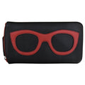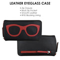ILI New York Leather Eyeglass Case Zip Glasses RFID Blocking Wallet Black Red NEW