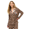 Designed for comfort and style, the Carly PJ Set is crafted from a soft cotton blend. Featuring a long sleeve button-front and coordinating wide-leg pants with a comfortable elastic waist, these pajamas are embellished with leopard prints for a wild look. Pair with a cozy robe and matching slippers for a night in.