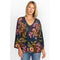 Johnny Was Graceful Drape Tunic Short Sleeves Floral Black Top Flowers Shirt Large NEW
