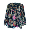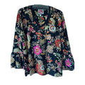 Johnny Was Janie Favorite Lowri Long Flute Sleeve Tee Floral Shirt Black Top NEW