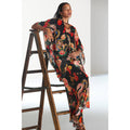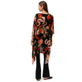Crafted from a delicate silk blend, the Levi Burnout Shawl is embellished with vibrant florals. This flowing, lightweight shawl features an open front and 3/4 sleeves and is finished with a handkerchief hemline. Layer over a classic black turtleneck and pair with flowing black trousers for a polished evening look.