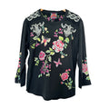 Johnny Was Maddy Contrast Seam Tee Cotton Floral Embroidered Shirt Black Top NEW