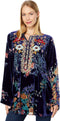 Johnny Was designs draw inspiration from music and bohemian influences. The collection features a modern interpretation of vintage boho chic, with flowing silhouettes and luxurious fabrics.