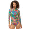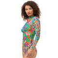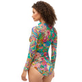 The Sweetspire Long Sleeve Surf Shirt combines bold florals and paisley prints for a lively, sun-ready look. Designed with a functional front zipper and raglan sleeves for ease of movement, it offers both comfort and style for active beach days. Perfect for staying protected and chic from surf to shore.