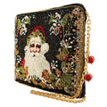 Mary Frances Holiday Magic Santa Beaded Zip Christmas Handbag Bag Black Purse NEW