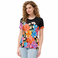 Johnny Was Janie Favorite Gerbera Short Crew Neck Tee Floral Shirt Black Top NEW