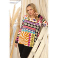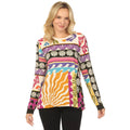 Elevate your casual wardrobe with the Johnny Was The Janie Favorite Swing Tee. Crafted from soft, stretchable fabric, this relaxed-fit top offers all-day comfort and breathability. Its vibrant, colorful geometric and blocked prints bring a playful, stylish touch to your everyday outfits. Designed with a crew neck, long sleeves, and a flattering swing silhouette, this pullover tee pairs perfectly with jeans, leggings, or casual skirts for effortless daily style. Ideal for women who love chic, casual fashion with a pop of color.