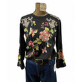 Johnny Was Maddy Contrast Seam Tee Cotton Floral Embroidered Shirt Black Top NEW