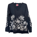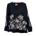 Johnny Was Riley Slit Long Tee Cotton Shirt Floral Embroidered Black Top NEW
