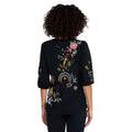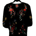 Johnny Was Ruth Puff Sleeve Floral Embroidered Tee Cotton Shirt Black Top NEW