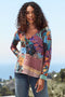 The Zippy Favorite is a gorgeously flowered, multi-colored, three-quarter sleeve and V-neck swing tee with pockets. The summer and spring seasons are the perfect time to wear these with just about anything in your wardrobe for a crisp, cool look that works as ideal casual wear that transitions from day to evening with ease.