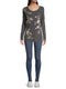 Johnny Was presents the "Fagan" printed sweatshirt featuring bold florals. Crafted with a crew neckline, long raglan sleeves, and a relaxed silhouette, this piece is a timeless fit. Made with polyester/spandex blend, it offers comfort and style in one.