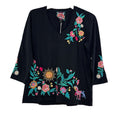 Johnny Was Ziviana 3/4 Trapunto Tee Floral Embroidery Cotton Shirt Black Top NEW