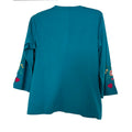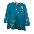 Johnny Was Ziviana Trapunto Tee Floral Embroidery Cotton Shirt Tile Blue Top NEW